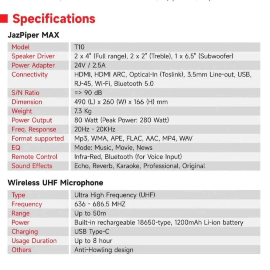 The JazPiper Max is a powerful all-in-one karaoke and home entertainment system, built for performance and convenience. No subscription required — install your own karaoke apps like YouTube or any Android APK for a personalized experience.