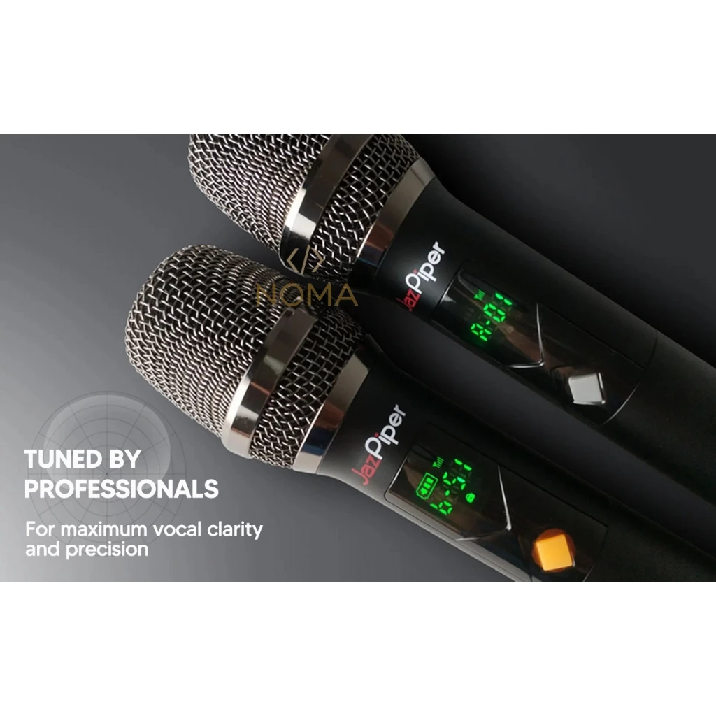 Bring the concert home with the JazPiper MAX, the all-in-one karaoke soundbar made for the whole family. Enjoy deep, powerful bass from the built-in subwoofer, crisp vocals with wireless UHF microphones, and hands-free control through smart voice commands.